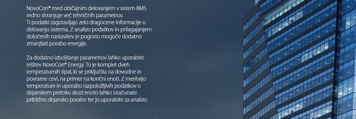 Pogon NovoCon® komunicira s sistemom BMS z digitalnim komunikacijskim protokolom in tako izmenjuje tehnične podatke sistema HVAC. S tem dobi vaš tehnični svetovalec ali