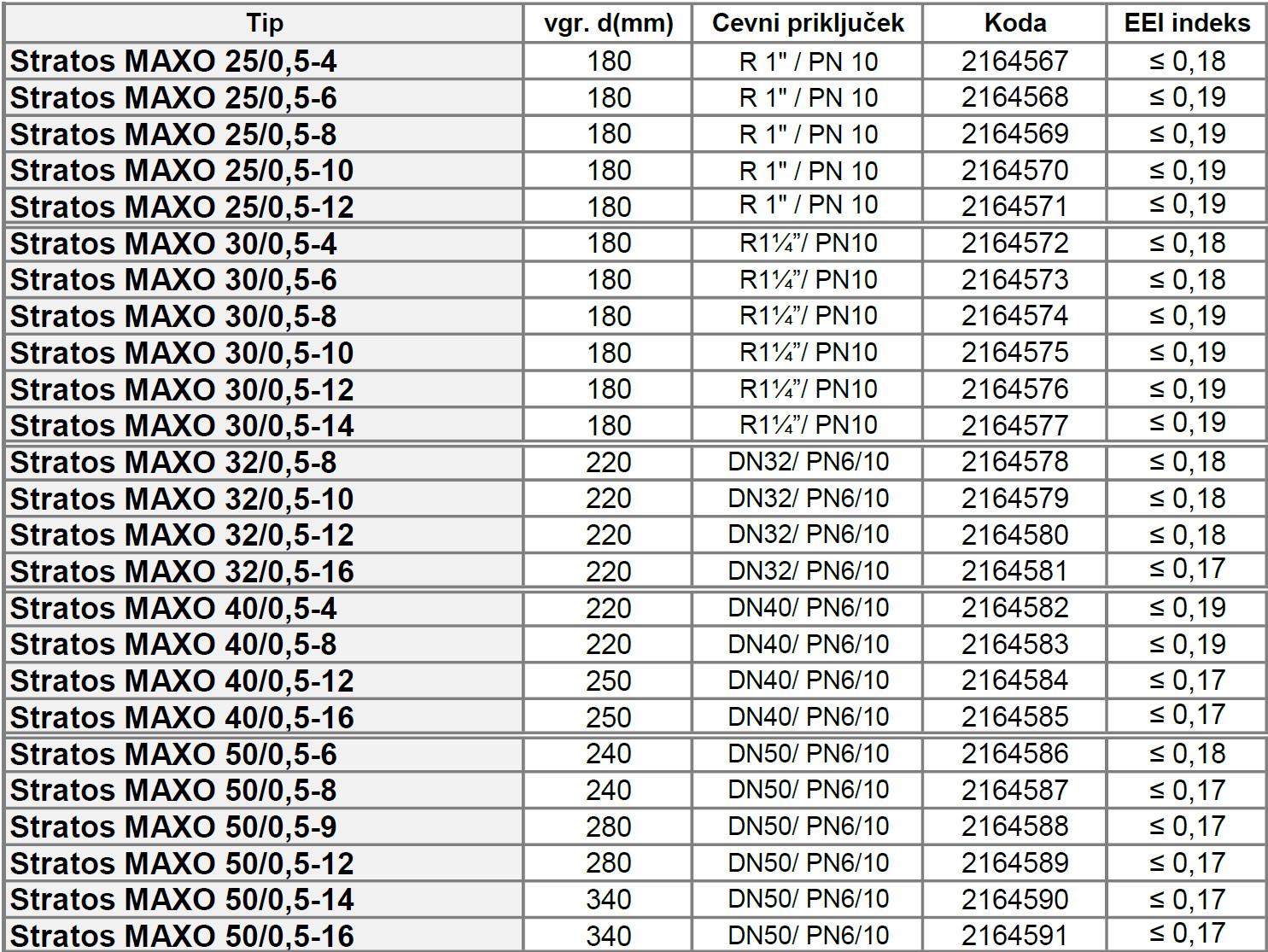 ZAMENJAVA ZA STRATOS - enofazna napetost 230V, 50Hz, EEI indeks ≤ 0,19,