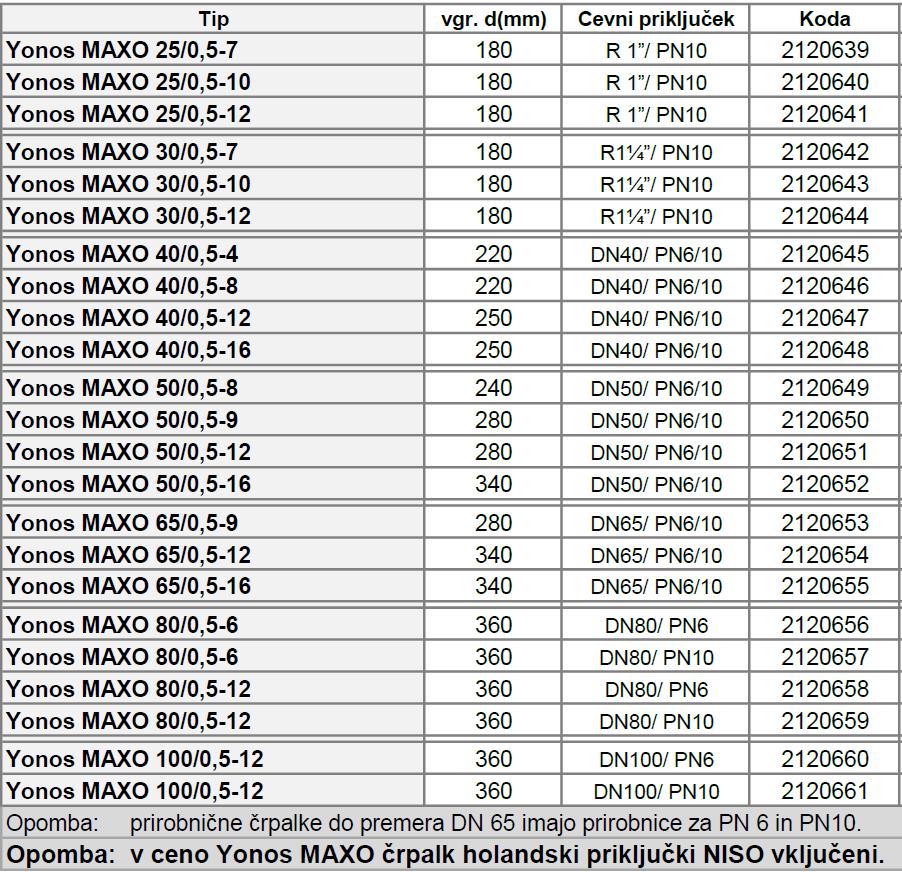 OBTOČNA ČRPALKA WILO YONOS MAXO 2120639, 2120640, 2120641, 2120642, 2120643, 2120644, 2120645, 2120646, 2120647, 2120648, 2120649, 2120650, 2120651, 2120652, 2120653, 2120654, 2120655, 2120656, 2120657, 2120658, 2120659, 2120660, 2120661